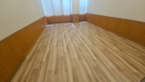 栃木県下野市|複合施設床リフォーム工事(Pタイルからサンゲツ長尺シートへ)